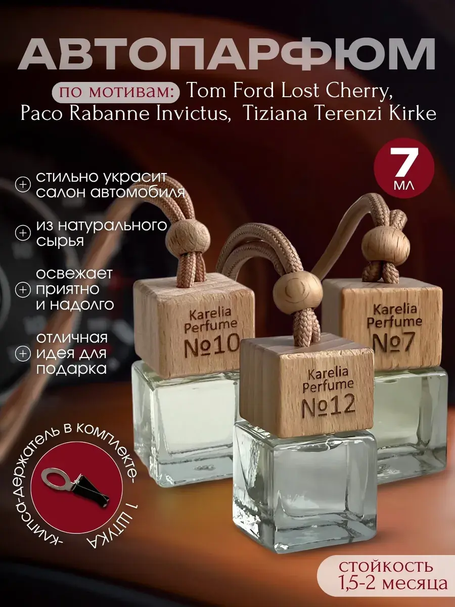 Подарочный автомобильный ароматизатор — это стильный и практичный набор из 3 ароматов: Tom Ford Lost Cherry, Paco Rabanne Invictus, Tiziana Terenzi Kirke, который идеально подойдет для украшения салона автомобиля, дома или офиса. Сочетая в себе приятные ароматы и натуральный состав, он станет отличным выбором для создания уютной атмосферы в любом пространстве. Прекрасное решение для подарка мужчине, женщине или подростку в день рождения, годовщину или просто в знак благодарности.Ароматизаторы имеют стойкий запах, который приятно освежает воздух и сохраняется надолго. Они подходят для использования не только в авто, но и дома: их можно разместить в ванной комнате, шкафу или гардеробной. Это отличный аксессуар для тех, кто ценит комфорт и стильные детали.Данный комплект универсален — его можно подарить папе, маме, брату, сестре, другу или подруге. Ароматизаторы гармонично дополнят интерьер любого автомобиля и станут оригинальным декором благодаря своему лаконичному дизайну. Этот продукт также будет уместен как необычный подарок коллеге по случаю Дня учителя.Среди доступных ароматов вы найдете натуральные нотки ванили, лимона или мяты — каждый из них подарит тепло и ощущение свежести. Эти парфюмированные мини-освежители создадут атмосферу комфорта как во время поездки на автомобиле, так и дома за чашкой кофе.Благодаря компактным размерам баночек с крышкой ароматизаторы легко устанавливаются на дефлектор торпеды либо могут быть размещены на столе или полке. Они наполняют пространство приятными парфюмерными композициями без навязчивости. Такой гаджет не только радует запахами табака, шоколада или жвачек по мотивам известных брендов духов dior sauvage и armani invictus, но также подчеркивает ваш вкус к деталям.Набор станет полезным приобретением для любителей путешествий: его можно взять с собой в поездку на машине или даже самолетом. Удобная коробочка делает транспортировку безопасной и предотвращает протекание жидкости внутри упаковки.