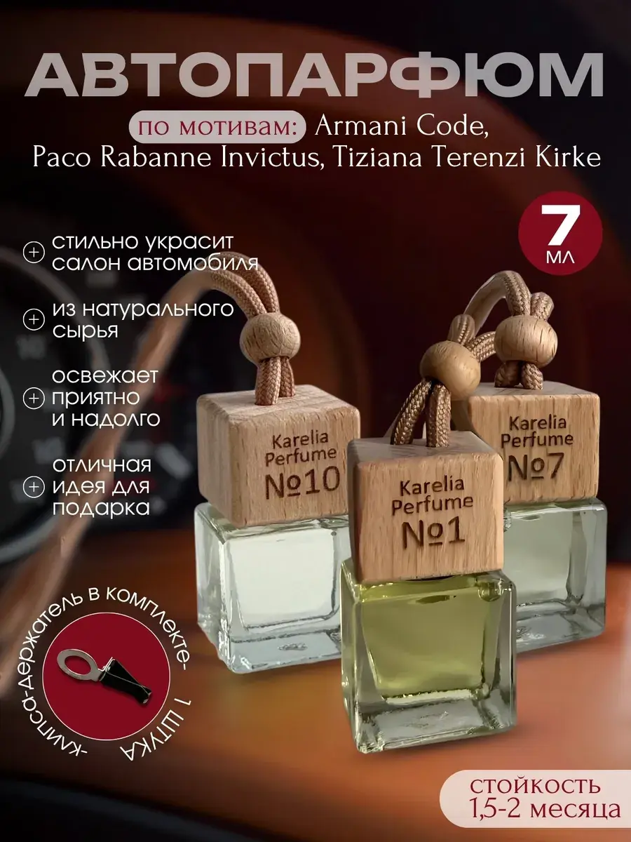 Подарочный автомобильный ароматизатор — это стильный и практичный набор из 3 ароматов: Armani Code, Paco Rabanne Invictus, Tiziana Terenzi Kirke, который идеально подойдет для украшения салона автомобиля, дома или офиса. Сочетая в себе приятные ароматы и натуральный состав, он станет отличным выбором для создания уютной атмосферы в любом пространстве. Прекрасное решение для подарка мужчине, женщине или подростку в день рождения, годовщину или просто в знак благодарности.Ароматизаторы имеют стойкий запах, который приятно освежает воздух и сохраняется надолго. Они подходят для использования не только в авто, но и дома: их можно разместить в ванной комнате, шкафу или гардеробной. Это отличный аксессуар для тех, кто ценит комфорт и стильные детали.Данный комплект универсален — его можно подарить папе, маме, брату, сестре, другу или подруге. Ароматизаторы гармонично дополнят интерьер любого автомобиля и станут оригинальным декором благодаря своему лаконичному дизайну. Этот продукт также будет уместен как необычный подарок коллеге по случаю Дня учителя.Среди доступных ароматов вы найдете натуральные нотки ванили, лимона или мяты — каждый из них подарит тепло и ощущение свежести. Эти парфюмированные мини-освежители создадут атмосферу комфорта как во время поездки на автомобиле, так и дома за чашкой кофе.Благодаря компактным размерам баночек с крышкой ароматизаторы легко устанавливаются на дефлектор торпеды либо могут быть размещены на столе или полке. Они наполняют пространство приятными парфюмерными композициями без навязчивости. Такой гаджет не только радует запахами табака, шоколада или жвачек по мотивам известных брендов духов dior sauvage и armani invictus, но также подчеркивает ваш вкус к деталям.Набор станет полезным приобретением для любителей путешествий: его можно взять с собой в поездку на машине или даже самолетом. Удобная коробочка делает транспортировку безопасной и предотвращает протекание жидкости внутри упаковки.
